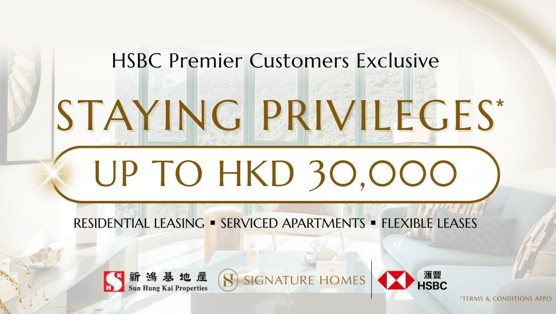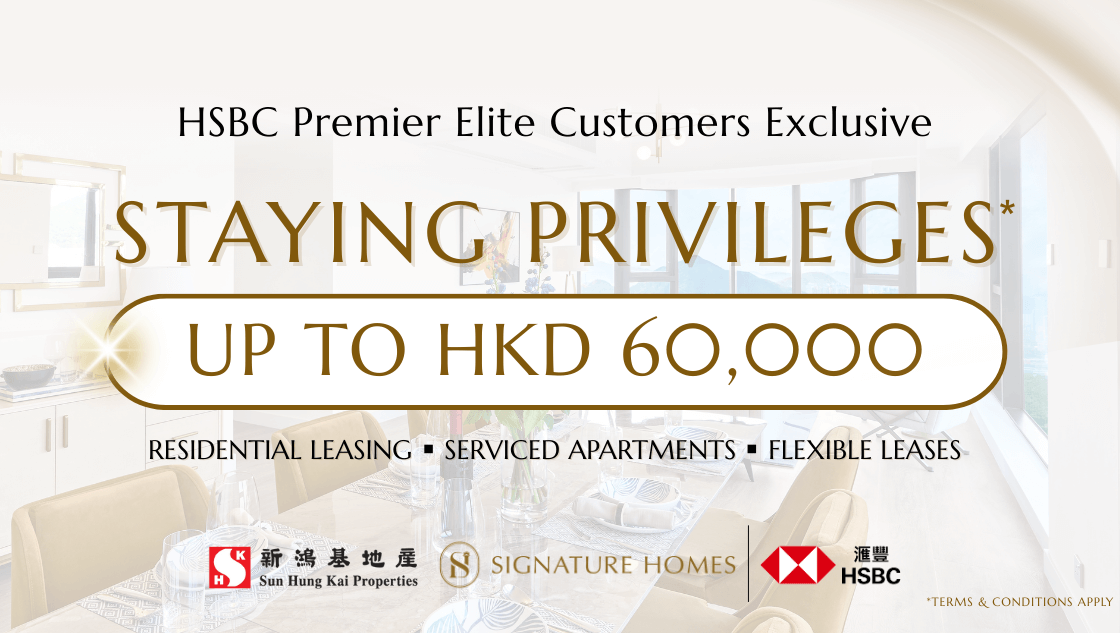Signature Homes is proud to launch the latest partnership with HSBC Hong Kong, offering exclusive benefits to Signature Homes Residential Leasing Properties and Serviced Apartments.